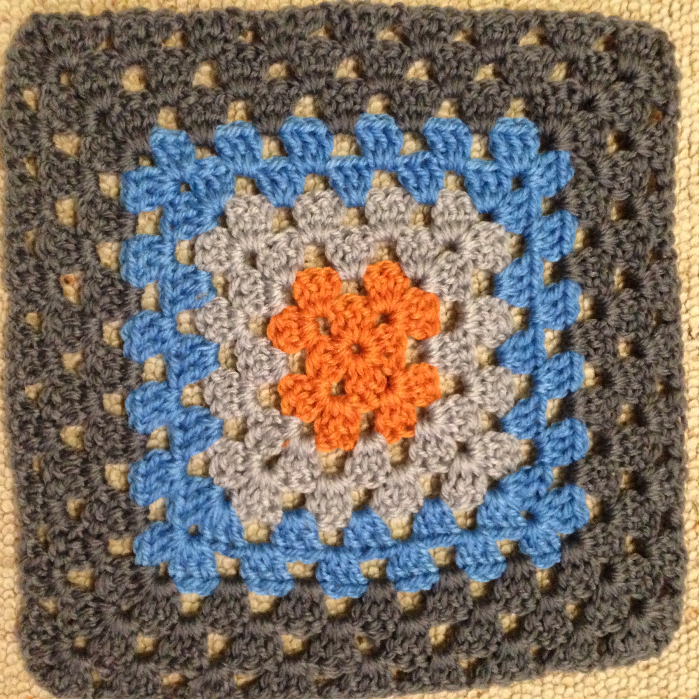 Once home I decided to join a monthly 10 inch square swap and so I made this to be the foundation of my blanket which I plan on making up for miss 3, who loves blue and orange. Also it is #GrannySquareDay2015 according to Instagram…
