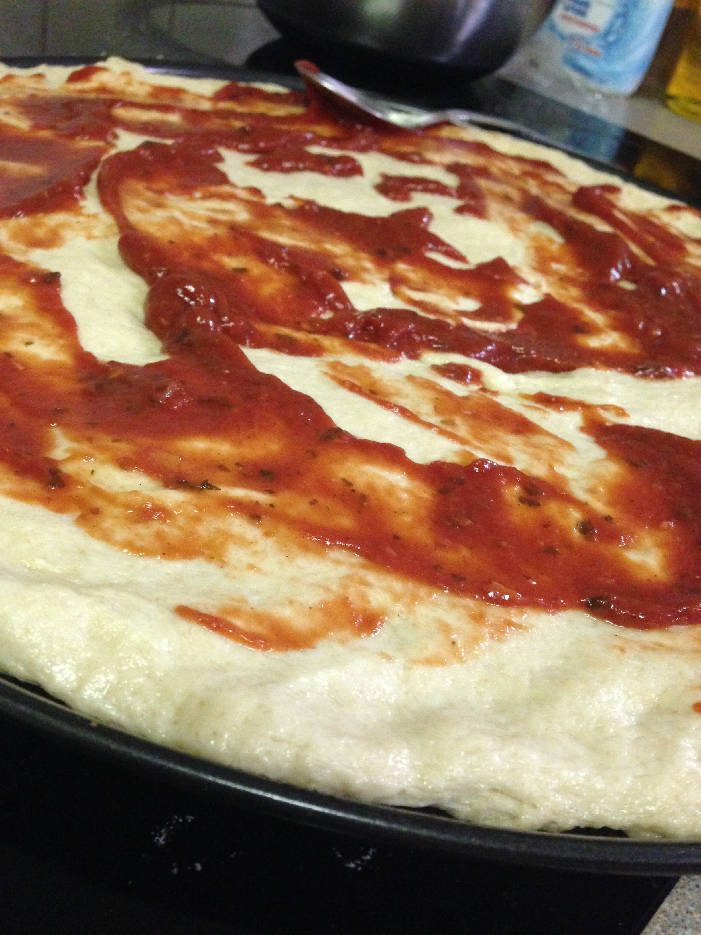 Lexi loves making bread, and I was uninspired at the butcher so I decided to make pizzas, from scratch, with a toddler…
