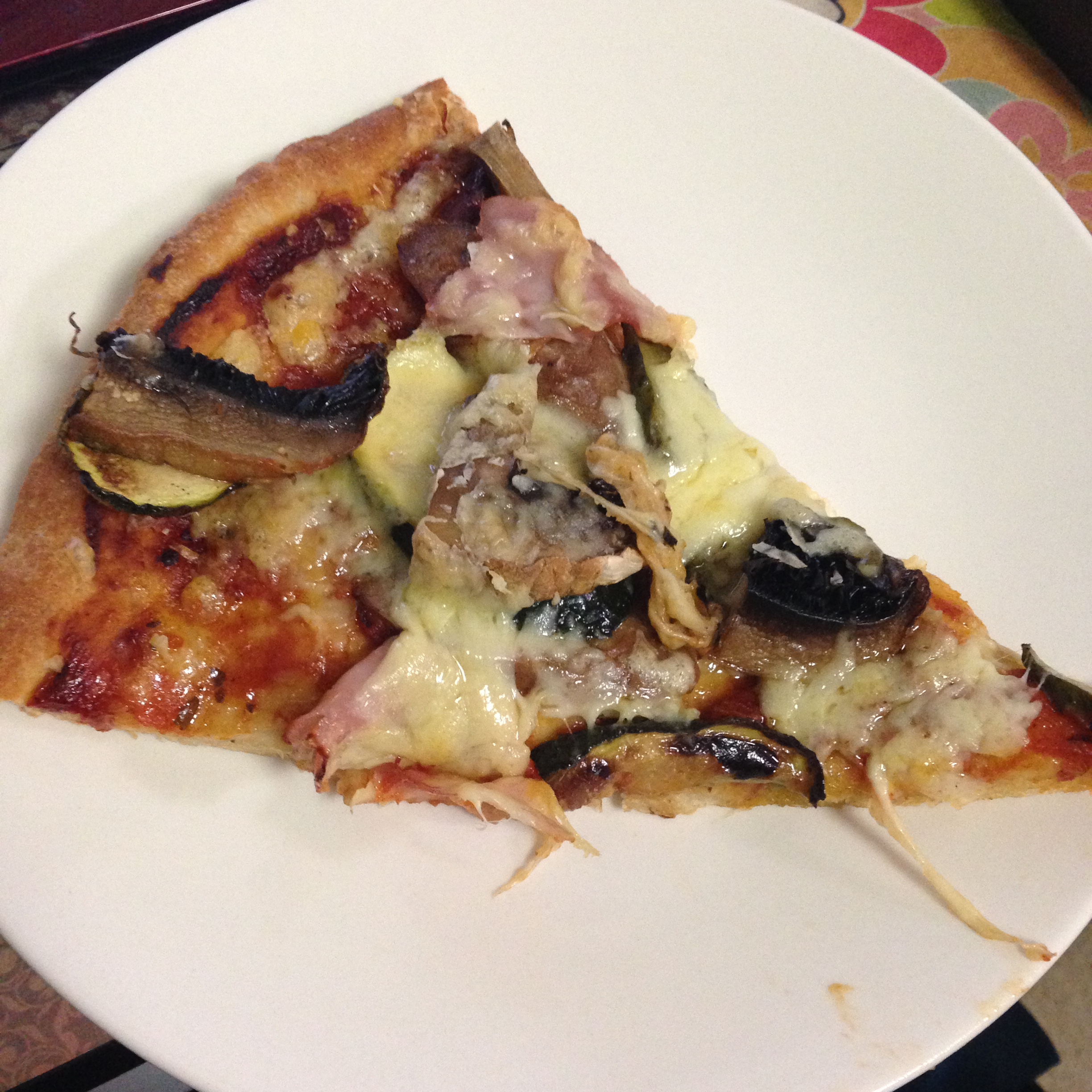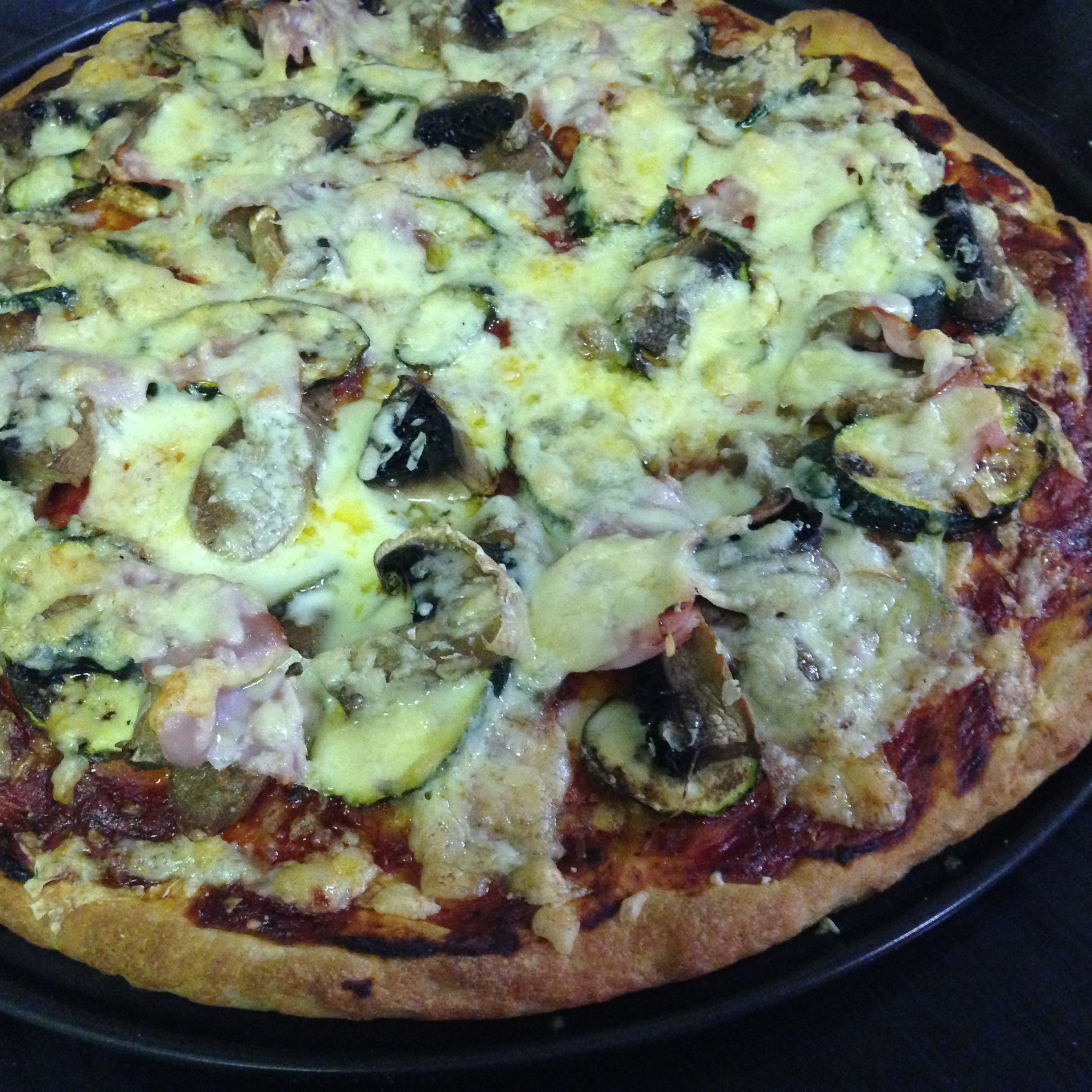 Meanwhile, once the adults are ready to eat – we just cannot eat at 6pm… – push out remainder of dough onto pizza tray, top and cook. I’m sure you can figure this out. Ours had stuff we found in the fridge on it.